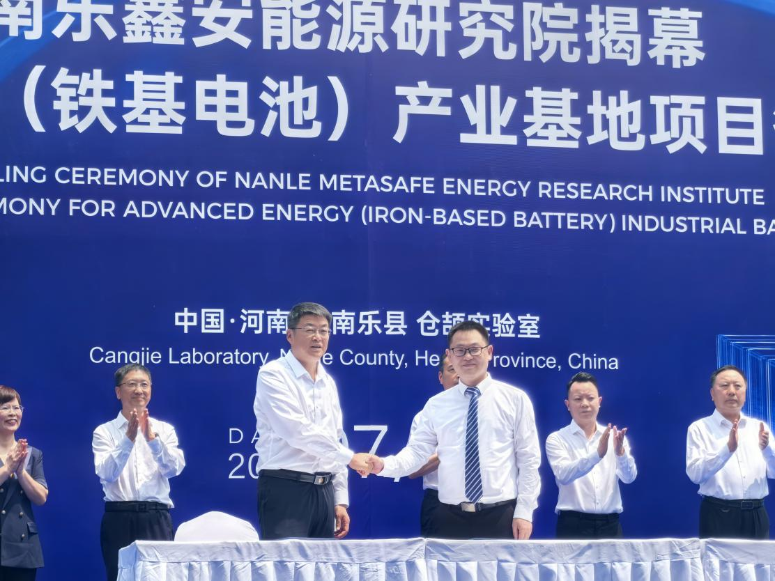 7月10日,河南濮阳市南乐县仓颉实验室见证了一项重要科技成果的转化——太阳成集团tyc122cc入口材料科学与工程学院贺浩博士团队自主研发的铁基电池技术正式迈入产业化新阶段,依托该技术成立的“南乐鑫安能源研究院”揭牌运行,中芯国际创始人张汝京博士,濮阳市、南乐县相关领导、材料学院党委书记郑延恒、段军飞教授出席活动。这标志着我校在新型储能材料研发与产学研融合领域取得新的突破性进展。