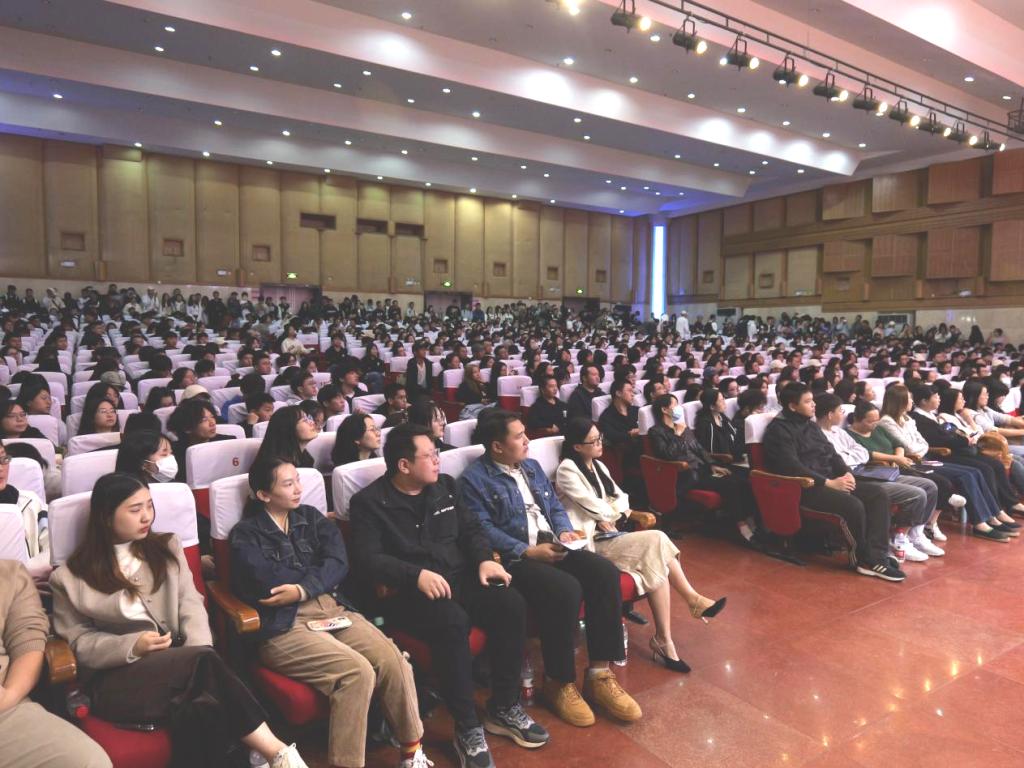 田兴洪书记向全体师生隆重介绍了罗翔教授,并代表全院师生向罗翔教授的到来表示热烈欢迎,同时对会场纪律作了相关要求。