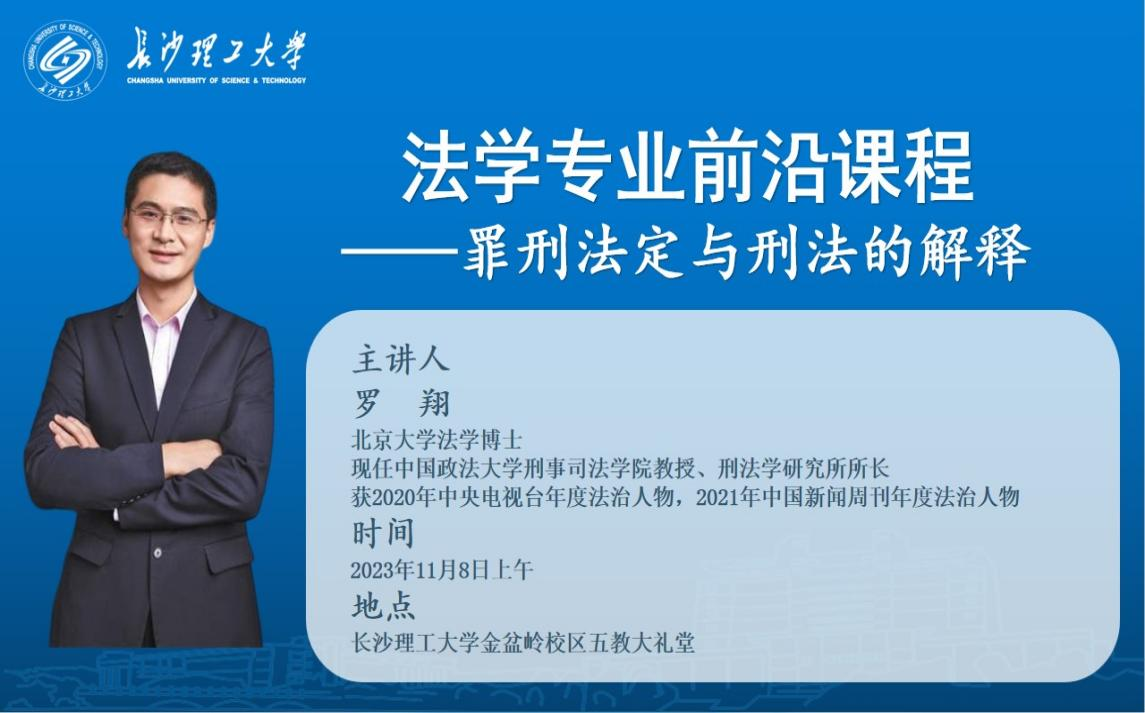 11月8日上午,我校特别邀请到知名法学家、法治教育推广者中国政法大学刑事司法学院罗翔教授作《罪刑法定与刑法的解释》的专题讲座。讲座由法学院党总支书记田兴洪主持,法学院、城南学院文法艺术系共计1000余名师生在金盆岭校区五号教学楼报告厅现场聆听讲座。