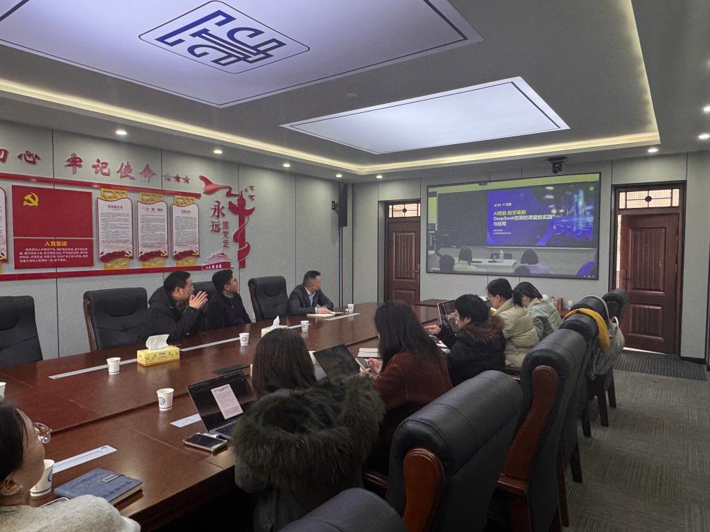 老师们首先认真聆听了线上培训会。随后涉外法治系主任王寰和法学系主任孙亚贤组织老师们结合法学专业课程特点,进行课程案例展示。陈骞委员重点解析了如何利用DeepSeek技术实现学生学情可视化分析以及课程知识图谱构建,引发在场教师的浓厚兴趣。