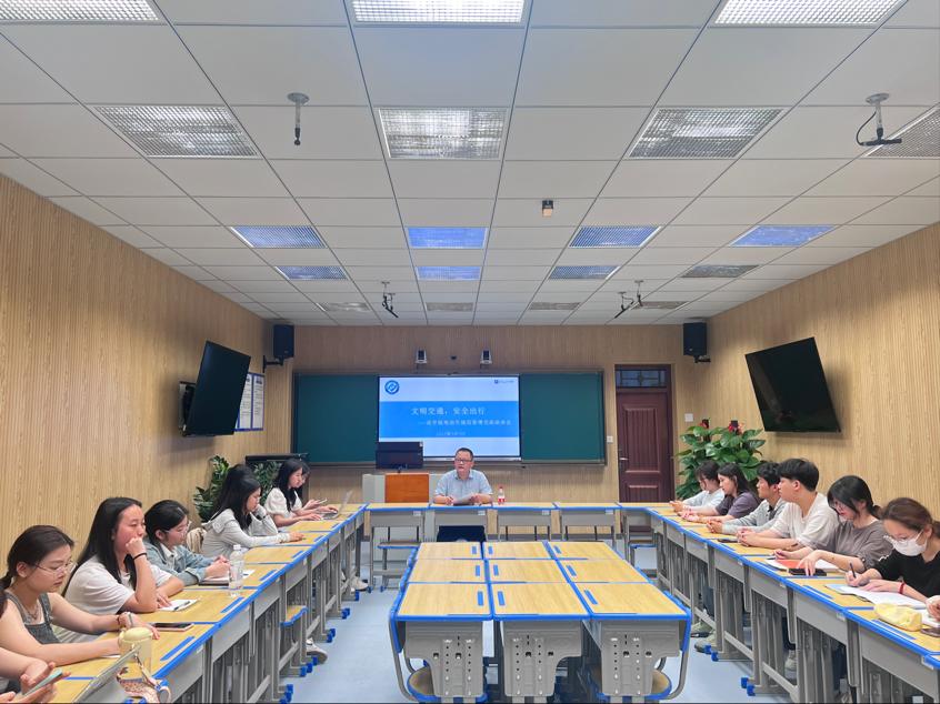 首先,汪功伟向学生阐述了学校出台的《交通安全集中整治方案》的相关背景,介绍了目前校园内电动车的现状、校园交通环境及电动车的安全隐患等问题,同时大致介绍了校园电动车限行方案的相关细则。