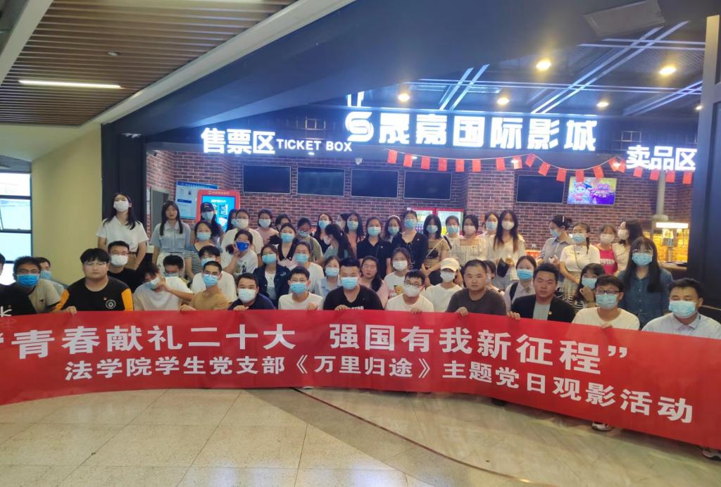 9月30日,电影《万里归途》正式上映。9月30日晚,法学院学生党支部全体成员自发走进影院观看了以撤侨与外交为主题的爱国主义教育影片《万里归途》,通过影片庆祝中华人民共和国成立73周年,迎接党的二十大胜利召开。