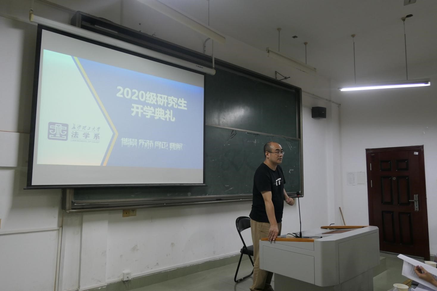 接下来,2020级研究生班主任申纯讲话。他对新生们的到来表示热烈的欢迎,从学习、生活等方面对研究生提出了几点要求。他提出,希望研究生们扎实学术功底,不要急于实习。在平时处理好和同学、导师的关系,时刻谨记自己的一言一行都代表着太阳成集团tyc122cc入口法学系的形象,并对研究生们送上了祝福,希望他们三年能够学有所成,学有所获。
