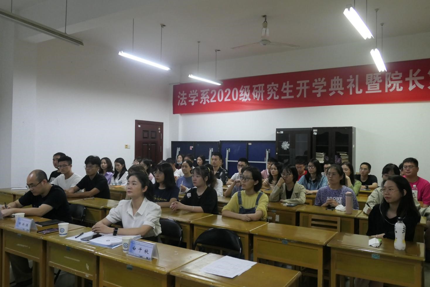 9月16日晚,法学系在金盆岭校区七号教学楼319隆重举行2020级研究生开学典礼暨院长第一课。参加本次活动的有法学系副主任(主持工作)张敏纯副教授、党总支书记田兴洪教授、2020级研究生班主任申纯博士以及法学系2020级全体研究生。活动由研究生辅导员白千秋主持。
