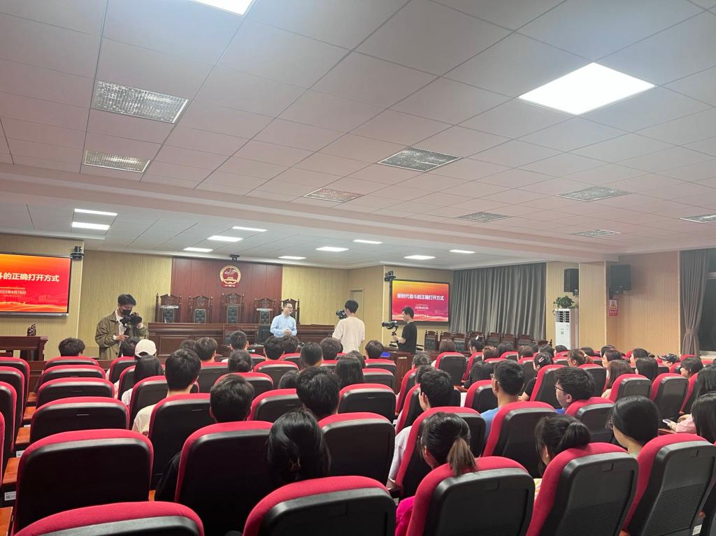 为学习贯彻党的二十大精神,深刻把握我校第四次党代会精神,赓续红色基因,9月21日上午,法学院在四教模拟法庭组织研究生新生学习党的二十大精神暨学校第四次党代会精神集体,2023级全体研究生新生到场参加。