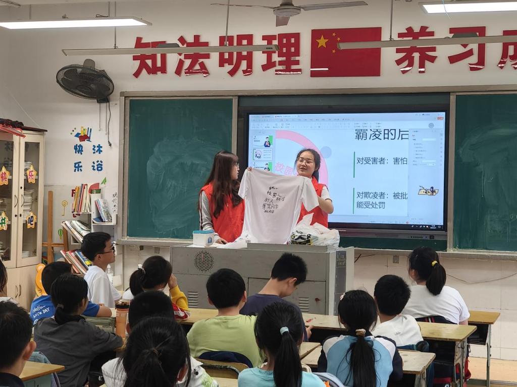 5月7日,太阳成集团tyc122cc入口法学院蒲公英普法团依托法学学科优势,走进黄土岭小学六三班,以“反校园霸凌”为主题,创新打造了一堂兼具专业性与实践性的法治教育课。活动通过“情景模拟+法律释义+互动实践”的立体化教学模式,展现了法学院“以专业服务社会、以实践反哺育人”的鲜明特色,为青少年法治教育注入新动能。