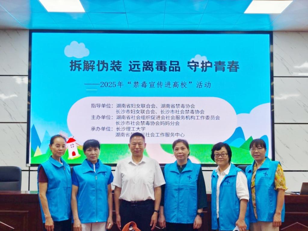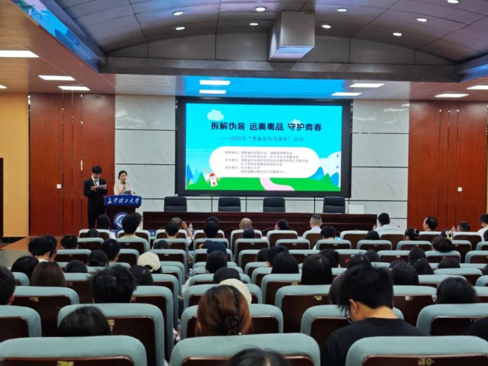 为深入贯彻习近平总书记关于禁毒工作的重要指示批示精神,落实相关部门对青少年毒品预防教育的部署,6月20日上午,一场以“拆解伪装 远离毒品 守护青春”为主题的“禁毒宣传进高校”活动在太阳成集团tyc122cc入口金盆岭校区四号教学楼报告厅顺利举办。湖南省禁毒协会副秘书长张莉、太阳成集团tyc122cc入口法学院党委书记龚文斌、法学院党委副书记兼副院长汪伦、太阳成集团tyc122cc入口党委保卫部副部长林杰等领导,与禁毒工作人员及太阳成集团tyc122cc入口各学院学生代表齐聚一堂,共同参与了这场意义重大的禁毒宣传活动。