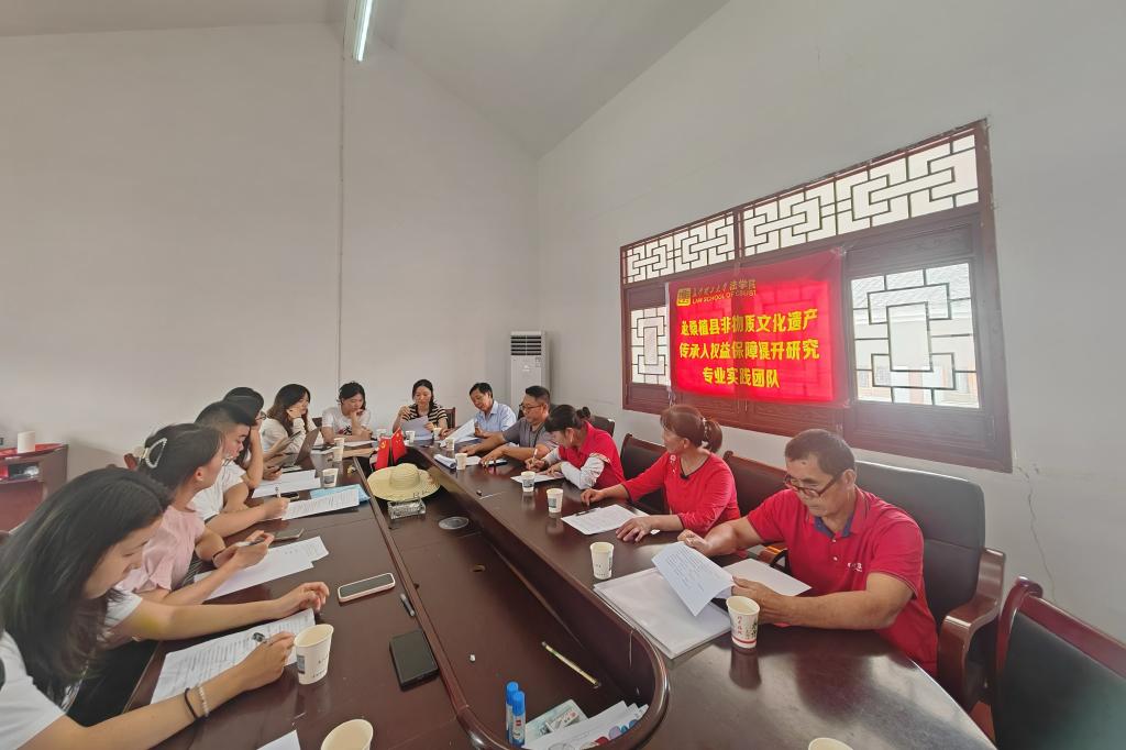 (实践团成员与乡镇领导、非遗传承人们开座谈会)