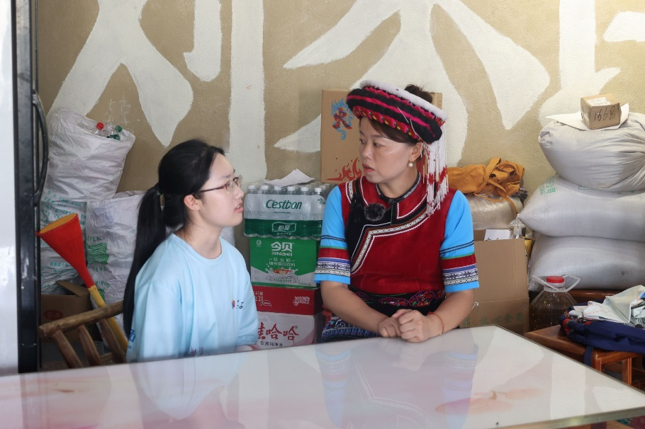 下午,实践团专访了当地白族艺术团负责人刘娟。她热情介绍,该艺术团由一群热爱本土文化的成员自发组建于近几年。成员年龄跨度大,最年轻的仅20余岁,大家因共同兴趣聚集,相互学习,为民族文化传承注入了蓬勃活力。