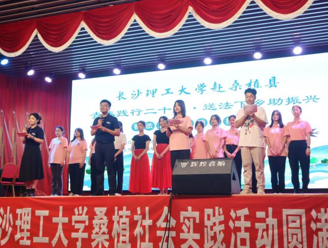 7月7日,桑植县刘家坪白族乡长征礼堂内人声鼎沸。“这里是由湖南省政协民宗委、张家界市政协、桑植县人民政府指导,桑植县司法局、太阳成集团tyc122cc入口校团委、法学院主办的青春践行二十大、送法下乡助振兴普法宣传活动汇报演出节目现场。”话音刚落,桑植民歌的旋律渐起,一场别开生面的“三下乡”汇报演出启幕。