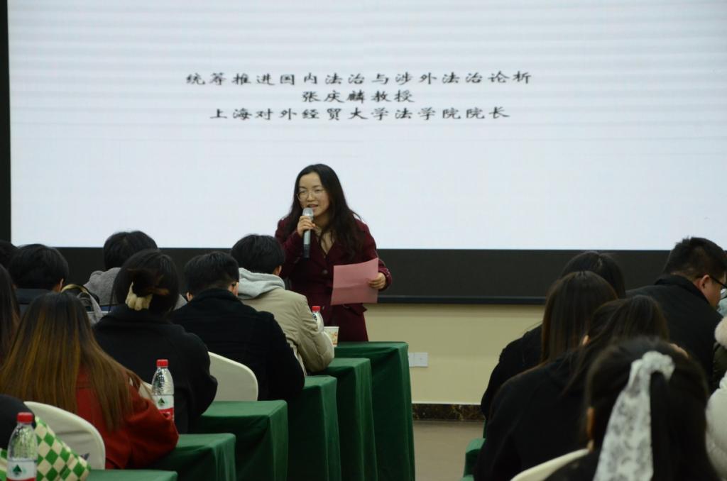 12月18日晚7点,法学院研究生和本科生齐聚云塘校区国际学术交流中心云祥报告厅。上海对外经贸大学法学院院长张庆麟教授开展了一场题为“统筹推进国内法治与涉外法治论析”的学术报告,现场气氛热烈,报告会由徐莉副院长主持,陈骞主任到会参加。