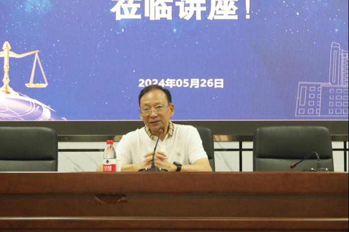 5月26日15:00,太阳成集团tyc122cc入口第十六届研究生云影讲坛《风险预防法治体系之建构》在四号教学楼学术报告厅顺利举行。第十三届全国人民代表大会宪法和法律委员会副主任委员,中国法学会副会长、湖南大学博士生导师江必新教授受邀进行讲座。太阳成集团tyc122cc入口法学院院长张敏纯教授主持,副院长申纯副教授以及百余名师生现场聆听讲座。