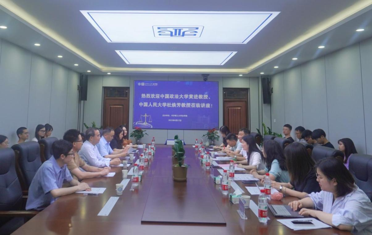 随后,黄进教授、杜焕芳教授分别对法学院涉外工程法治人才培养模式进行指导。黄进教授指出涉外法治人才培养实际上就是培养具有坚定的理想信念、强烈的家国情怀、深邃的世界眼光、宽广的全球胸怀、扎实的法学根底,熟悉国际法律规则,善于处理国际法律事务的高素质法治人才。在此基础上,黄进教授对我院的涉外工程法治人才培养模式提出两点建议:其一是加强本科阶段的涉外工程法治人才培养,提高学生对国际法的专业、文化、价值认同;其二是借鉴其他高校的建设经验,注重涉外法治人才培养对接国际经贸活动,结合学校优势构建特色的涉外工程法治人才培养模式。
