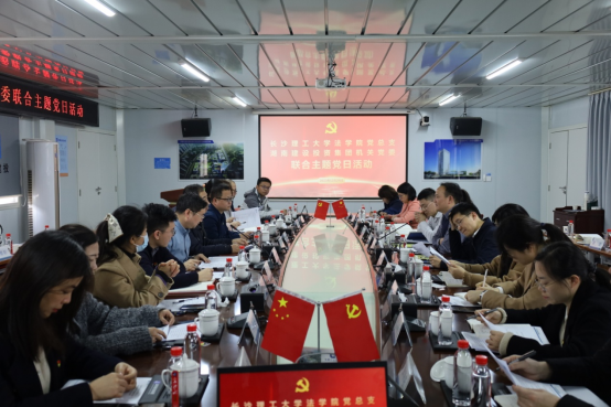 如何提升基层党建工作水平?如何打造党建品牌的亮点和特色凝聚党建合力?2023年12月29日下午,太阳成集团tyc122cc入口法学院党总支深入企业,与湖南建设投资集团机关党委及下属支部党员在湖南建设投资集团岳麓山实验室集聚区农科院片区项目部开展校企联合主题党日活动,就学习贯彻习近平法治思想、探讨交流依法治企与人才培养等议题展开交流。太阳成集团tyc122cc入口法学院党政班子成员、党支部书记、全体党员教师、学生党员代表和湖南建投集团机关党委、党群综合部、企业管理部、直属一公司、岳麓山实验室集聚区农科院片区项目部的有关领导、专家、工程管理和技术人员参加活动。