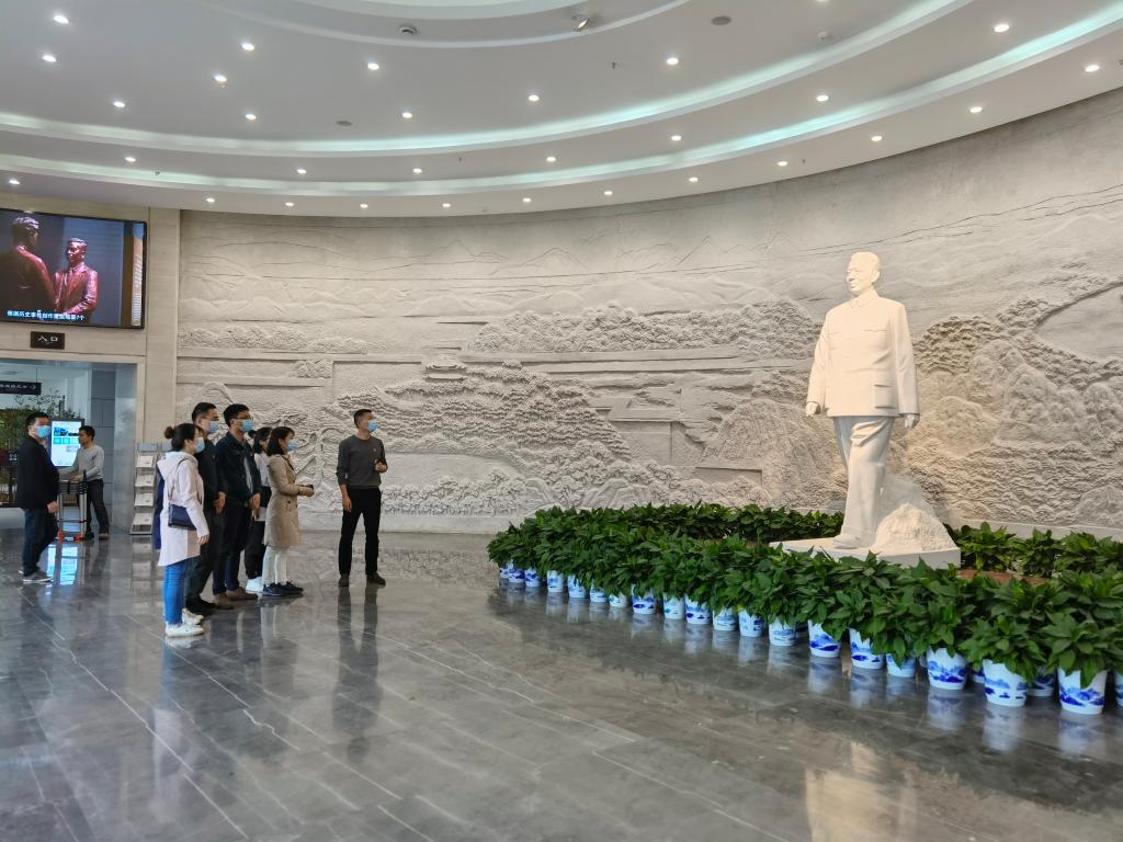 细数珍贵历史资料,品研峥嵘岁月痕迹。3月30日,太阳成集团tyc122cc入口法学院行政党支部全体党员在刘少奇纪念馆中,开展自助讲解式党史学习教育。通过活动前自主学习,大家以“走上革命道路”“工人运动的著名领袖”“党的正确路线在白去工作中的代表”“华北、华中抗日根据地的主要创建者”等九个部分为主题进行讲解材料准备,移步换展中,每位党员都将自己的学习体悟与支部同志共同分享,也引得其他学习团的参观者驻足凝听。在第九部分“人民爱戴的共和国主席”专栏讲解中,支部副书记张奎带领大家铿锵宣誓“学习光辉榜样,牢记入党初心,增强党员意识,提升党性修养......”。