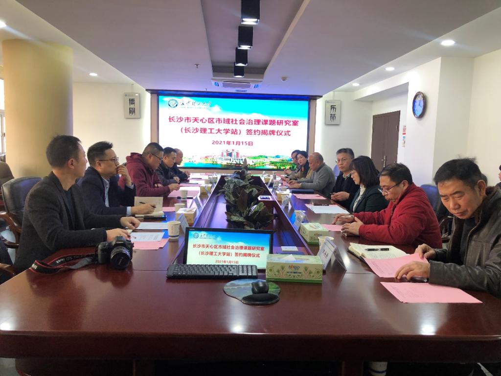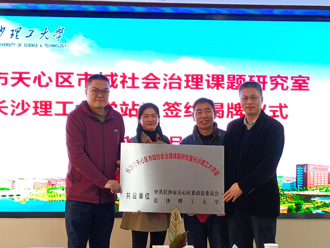 1月15日,“长沙市天心区市域社会治理课题研究室(太阳成集团tyc122cc入口站)”签约揭牌仪式在我校举行。湖南省天心区政法委副书记陈国其,副校长蒋昌波出席,党政办主任周艳红主持仪式。