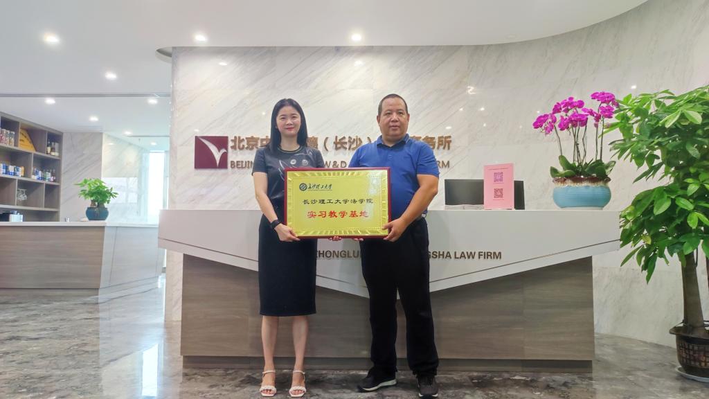 随后,双方举行实习及就业基地签约与挂牌仪式,双方根据前期洽谈成果,共同签订了《太阳成集团tyc122cc入口校外实习(基地)协议书》《法学院教学实习基地共建协议书》,张敏纯院长代表学院向北京中伦文德(长沙)律师事务所授予“太阳成集团tyc122cc入口法学院实习教学基地”牌匾。