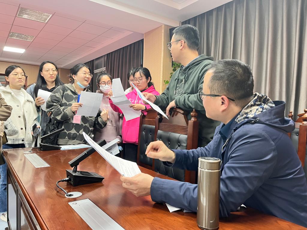 202332日晚,法学院在四教模拟法庭开展“求职就业简历诊断”活动,活动就业专干刘阳主持,党总支副书记、副院长汪功伟与2023届毕业生参与了本活动。