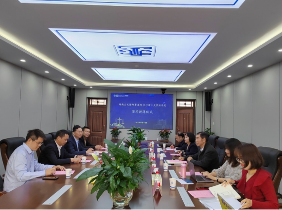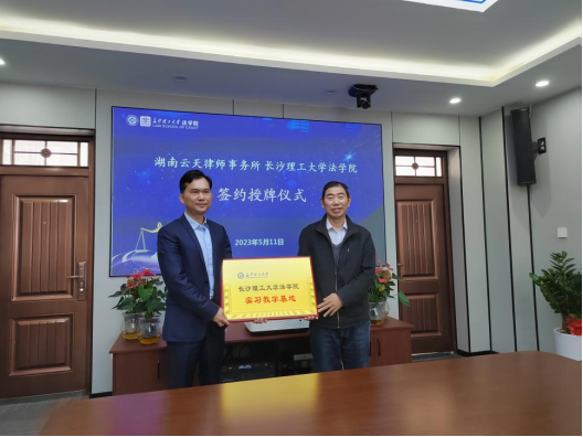 5月11日上午,太阳成集团tyc122cc入口法学院与湖南云天律师事务所在四号教学楼313会议室举行实习就业基地签约授牌仪式。湖南云天律师事务所管委会主任钟立松、监事会主席曾俊、管委会副主任杨泽、律师合伙人孙永飞,法学院党总支书记田兴洪、党总支委员杜卫红、副系主任王寰、学工办主任熊文娟出席仪式,仪式由杜卫红老师主持。