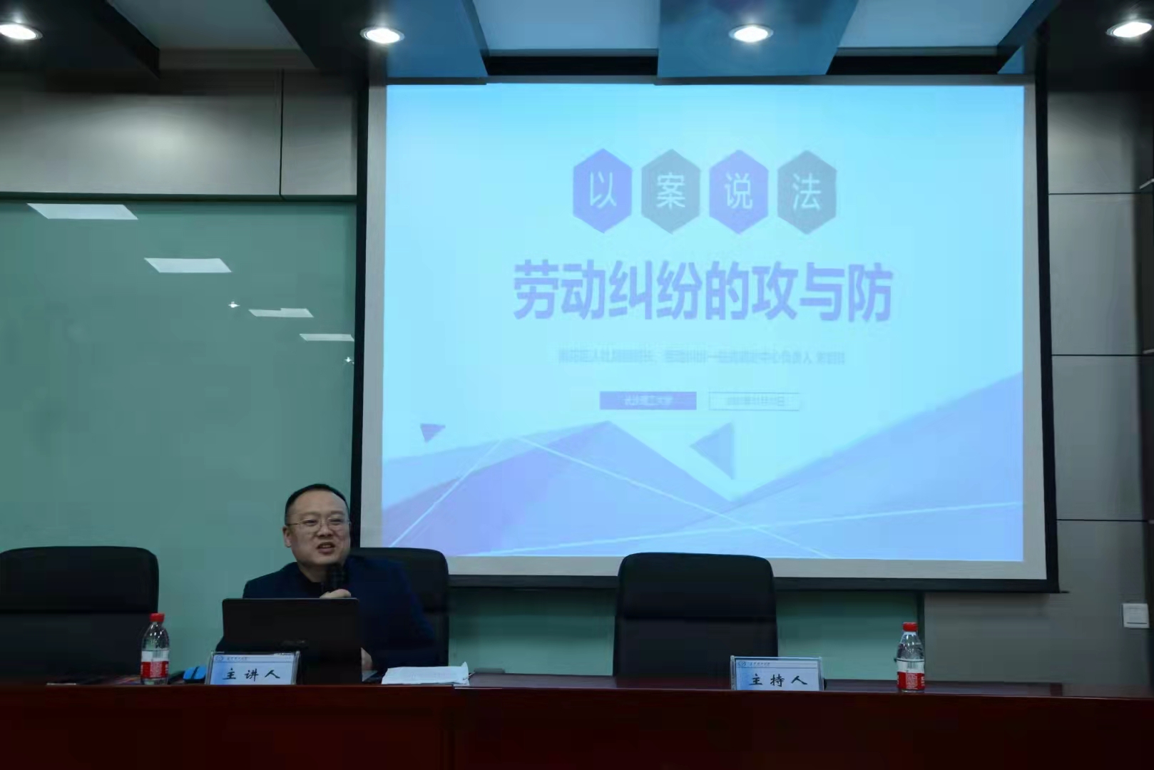 11月23晚7点,我院于金盆岭校区7教212室举办题为“以案说法——劳动纠纷的攻与防”的讲座。会议邀请到长沙市雨花区人力资源和社会保障局朱剑峰副局长主讲。出席会议的有雨花区人社局政策法规科科长曹江林、仲裁管理科科长张弘、律师志愿团代表杨玉洁律师、普法宣讲团成员记者胡晓春,我院院长张敏纯、副院长徐莉、杜卫红、黄周炳、阳明武等教师代表。讲座由徐莉副院长主持。