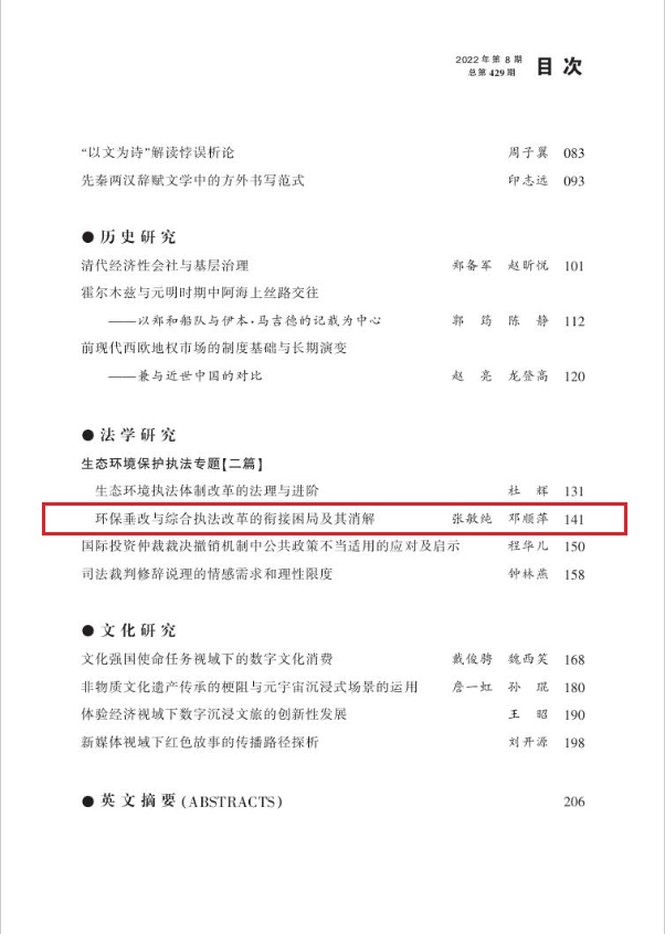 近日,太阳成集团tyc122cc入口法学院院长张敏纯在《江西社会科学》(CSSCI来源期刊)2023年第11期发表论文《环保垂改与综合执法改革的衔接困局及其消解》。