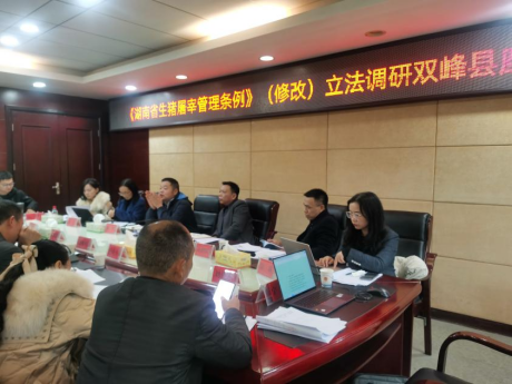 调研组先后实地调研了郴州、娄底两地的屠宰场点,并在郴州、娄底两地召开了4次调研座谈会,两地的农业农村局、司法局等职能部门、人大代表、乡镇代表及屠宰养殖企业代表均参与了座谈调研会。与会人员围绕屠宰场点的设置、屠宰场点的管理、屠宰场点质量监管以及牛、羊、家禽的屠宰管理这四方面内容充分发表了意见。
