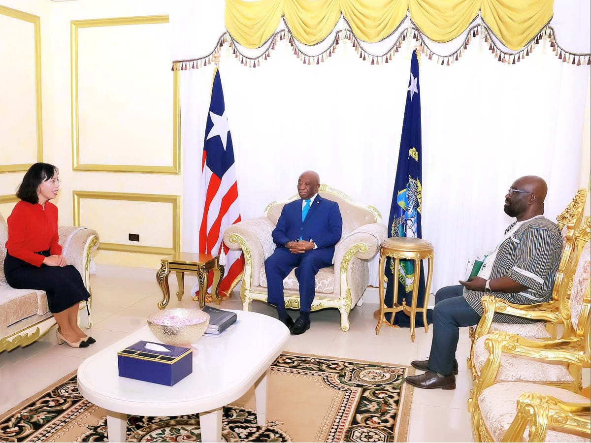当地时间2025年4月30日,利比里亚总统约瑟夫?博阿凯(Joseph Nyumah Boakai)在总统府亲切接见了利比里亚大学孔子学院(下文简称“利大孔院”)即将离任的中方院长周红专,对其在推动中利教育合作、促进中利文化交流方面所作出的积极努力予以充分肯定。