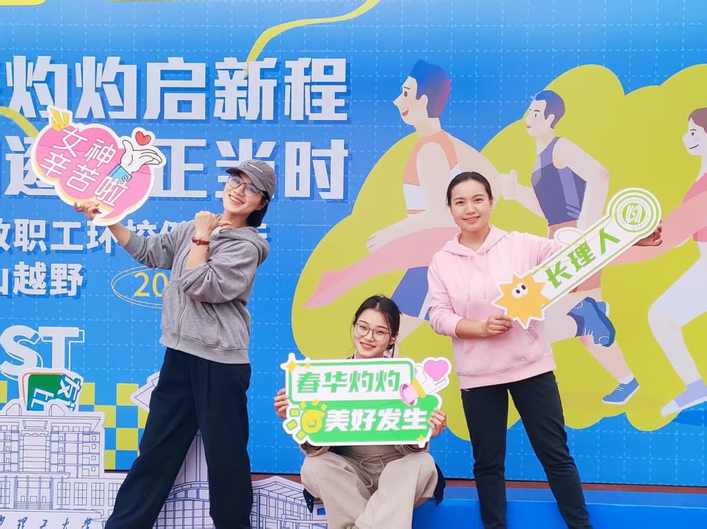 校党委副书记、工会主席方琼致开幕词,鼓励全体长理人以奔跑者的姿态,在各自的赛道上全力冲刺。活动中,我院的老师们兵分两路,环校健步行组途径各大教学楼、云影湖、年轮广场等校园标志性建筑,尽享沿途春色如画;云霞山越野组从云霞山脚下攀登直上,矫健的声影穿梭于山林之间,领略自然野趣的治愈。沿途“巾帼芳华 强国有我”“幸福长理 扬帆奋进”“时不待我 只争朝夕”等主题打卡点都留下了国际人的昂扬姿态。