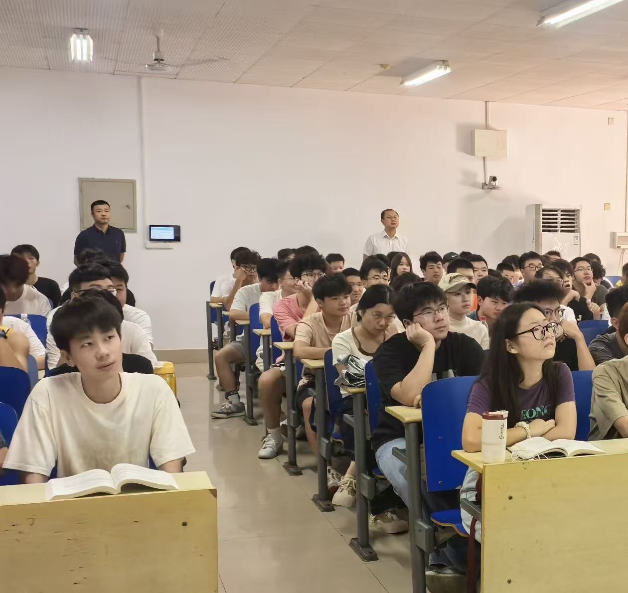 为维护新学期正常教学秩序,确保教学工作的平稳运行,国际工学院按照《太阳成集团tyc122cc入口2025年秋季学期开学本科教学工作安排的通知》要求,由学院党委书记黄自力与院长吴迪龙带队全院领导班子展开新学期第一天教学运行检查,全体教务老师、辅导员陪同参与。