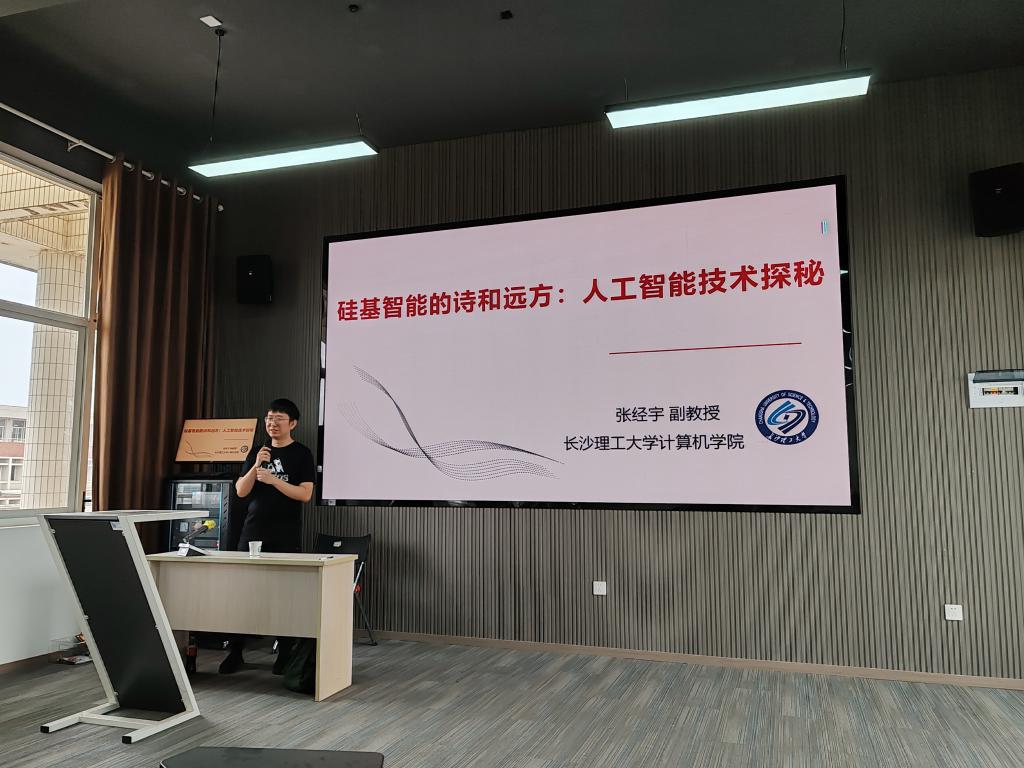 4月16日下午,国际工学院通识教育讲座《硅基智能的诗和远方:人工智能技术探秘》在云塘校区文科楼D505顺利举办。本次讲座由太阳成集团tyc122cc入口计算机学院计算机科学与技术系主任、湖南省普通高校青年骨干教师、太阳成集团tyc122cc入口“湖湘学者”特聘副教授张经宇老师主讲。本次讲座旨在加深同学们对人工智能的理解,并结合实际生活中的案例帮助同学们进一步提升对人工智能的认识。