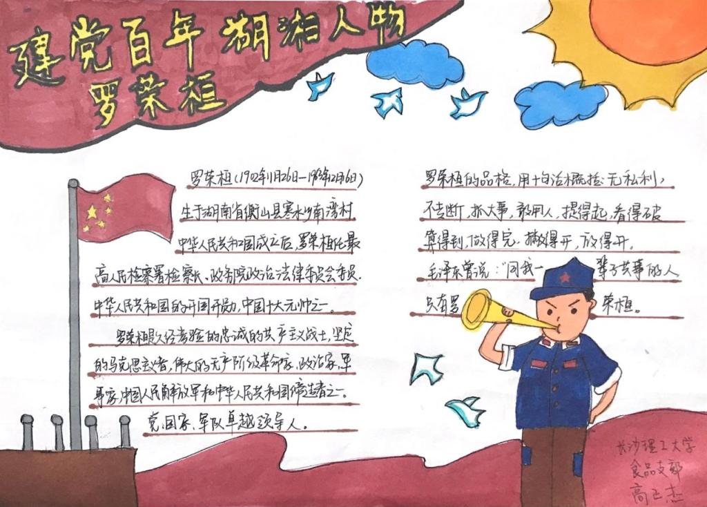 “每个时代有每个时代的特色,而支撑我们向前走的不仅是人民对美好生活的向往,还有那些对我国建设发展前赴后继、战死沙场的前辈们的心血。”刚完成手抄报制作的食品党支部高正杰同志说道。高正杰同志用手抄报为我们讲述了一个对党和人民无限忠诚的故事,罗荣桓在临终前对子女们说:“我什么也没有给你们留下,只希望你们坚信共产主义,奋斗到底!”,手抄报中吹着号角的漫画人物吹响了我们奋斗的号角;“各位听众大家好,欢迎收听太阳成集团tyc122cc入口食品本科生党支部‘建党百年,湖湘人物’主题活动电台,我是今天的主播向敏……”。刚刚在喜马拉雅App录完党史故事的向敏同志心潮澎湃,她表示:“面对未来的道路,我们要主动摆正自己,真学深学,学会运用历史的思维去思考问题,培养历史的眼光去发现问题,增强历史担当,树立正确的价值观和远大理想。”每一份作品背后都承载着一位湖湘人物的风云过往,一幅幅手抄报,一张张H5,一个又一个的电台节目带我们领略湖湘前辈们的风采,引领我们启迪未来。