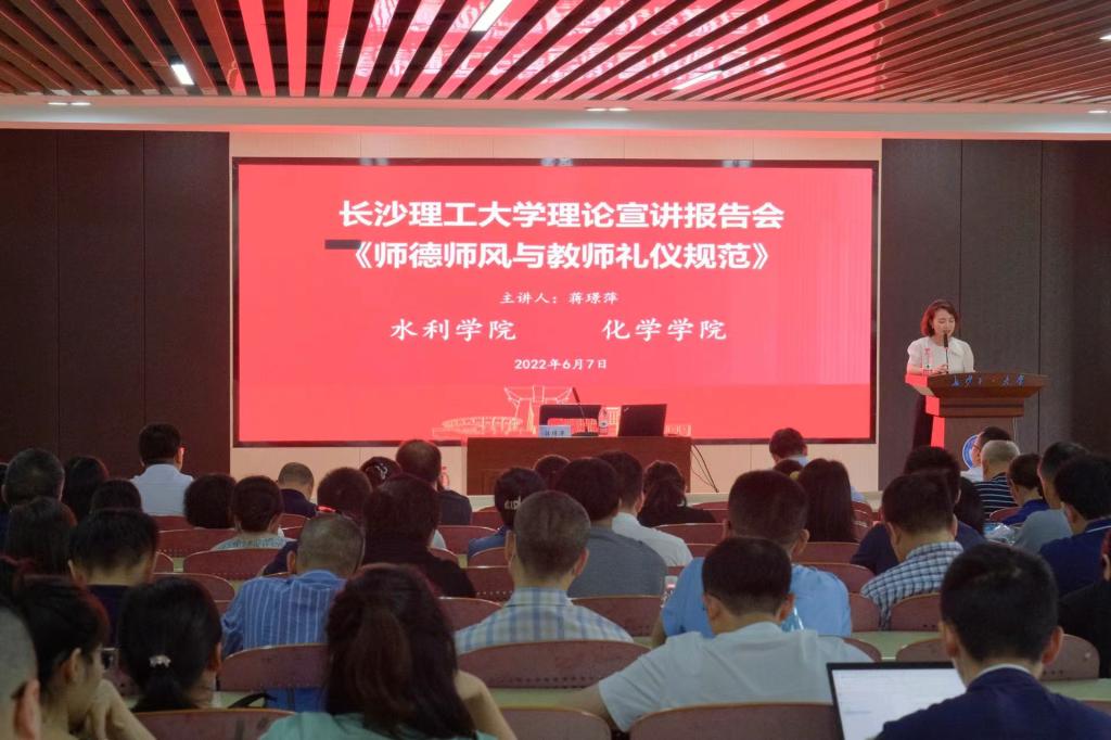 为进一步推进二级学院师德师风建设,提高全体教职工的礼仪素养和师德修养,喜迎二十大的召开,6月7日下午,副校长蒋璟萍在工科三号楼A307会议室为化学学院和水利学院全体教职工开展理论宣讲,宣讲主题为《师德师风与教师礼仪规范》。我院全体党政领导班子和全院93名教师参加了此次宣讲。
