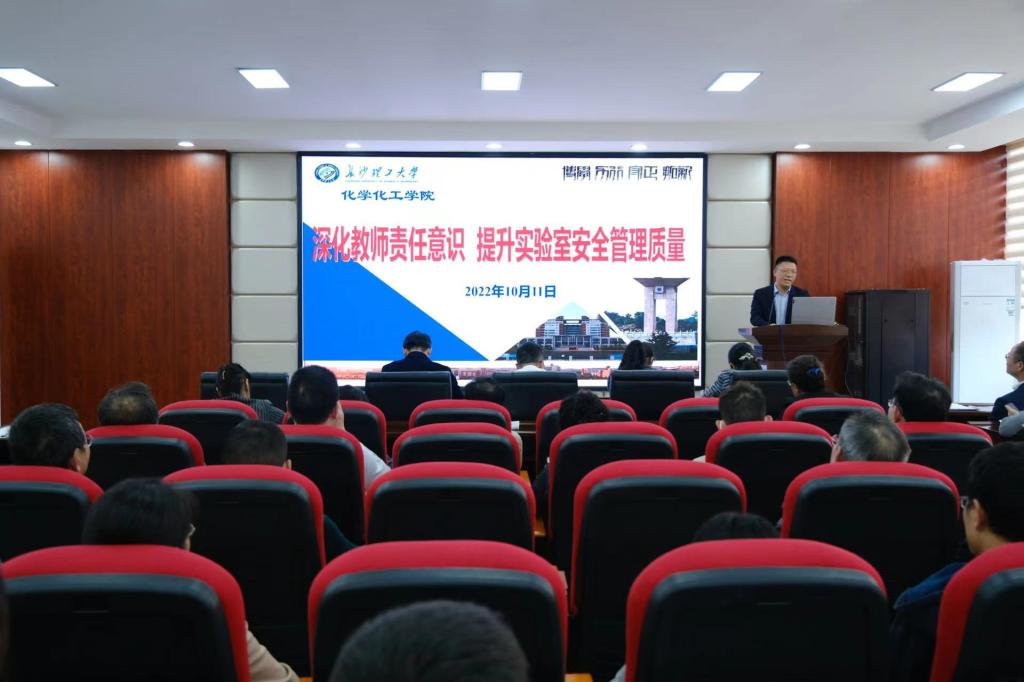 副院长卿志和做了题为《深化教师责任意识 提升实验室安全管理质量》的宣讲,他从实验室安全之痛点、导师安全管理之不足、我院实验室概况三个方面对我院的安全工作做出了部署,并要求全体教职工认真落实好《实验室制度汇编》、《太阳成集团tyc122cc入口实验室安全责任追究实施细则(试行)》等制度和文件精神。他代表学院与相关教师签订《化学化工学院2022-2023学年实验室安全责任书》,并强调,导师是实验室安全事故的重要责任人。卿志和通过列举事故案例,为全院教职工敲响安全警钟。