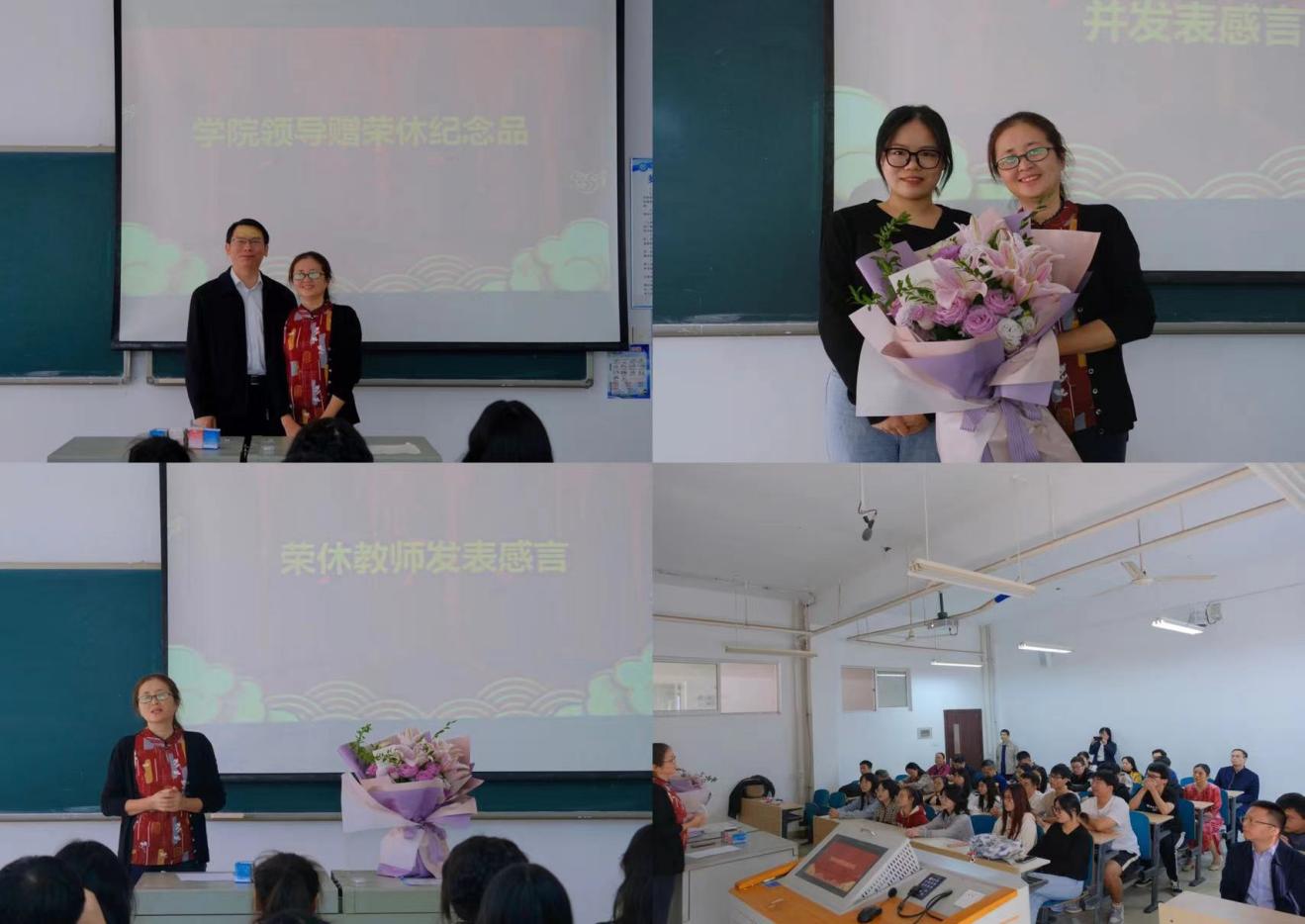 宋刘斌高度评价了王萍老师在教书育人方面的突出贡献,指出荣休教职工既是学院事业发展的建设者,又是学院创业历史的见证者,是学院无形和无价的宝贵财富,王萍老师从教整整31年,把美好的青春、智慧和才华贡献给了学校,培养了大量优秀人才。宋刘斌代表学院衷心祝愿王老师保重身体、安享幸福,在新的人生旅程中收获更大的喜悦,常回“家”看看。