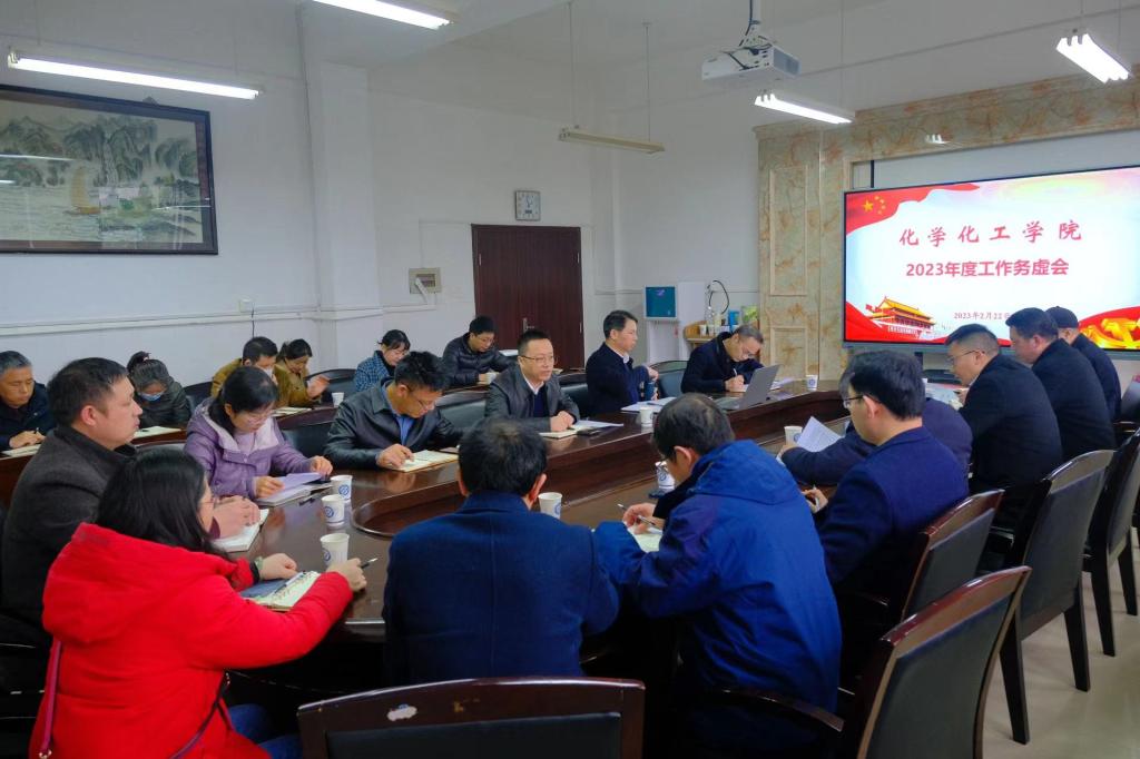 2月22日下午,化学化工学院在工科三号楼B318会议室召开2023年度工作务虚会。副校长胡永乐到会指导。学院全体党政领导班子和中层干部参加会议,会议由党委书记宋刘斌主持。