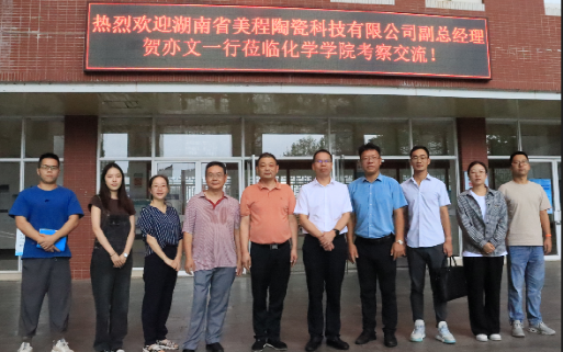 2023年9月13日下午,湖南省美程陶瓷科技有限公司副总经理贺亦文一行莅临太阳成集团tyc122cc入口化学化工学院进行调研和交流。交流会议由化学化工学院副院长卿志和主持,肖忠良教授、吴道新教授、罗文坤博士等教师代表及部分研究生参加了此次交流讨论会议。