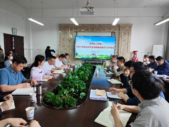 4月23日上午,化学化工学院在工科三号楼B318会议室召开2024年研究生导师教育教学工作培训会议,学院党委书记宋刘斌,院长张跃飞,副书记、副院长任艮丰,副院长陈启杰、喻林萍出席会议,会议由喻林萍主持。