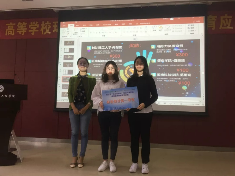 这一热度持续高涨的赛事通过初赛决出了来自全国各地28所高校48支参赛的代表队伍,最终来自我校的环工专业的长理F4-1队经过紧张激烈方案设计答辩与虚拟仿真机试两个环节的比拼,以总得分第三的成绩荣获一等奖,获最佳指导老师奖(全场两个)。另一支代表队伍野狼disco队荣获三等奖,向慧勤同学在设计方案投稿环节获最佳设计奖一等奖!