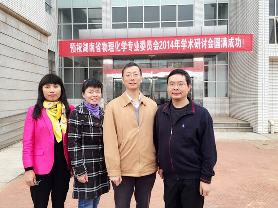 湖南省化学化工学会物理化学专业会员会2014年学术研讨会于2014年11月14-16日在湘潭大学举行,会议由湘潭大学化学学院承办,中南大学、湖南大学及我校等省内高校物理化学专业60余名专家教授参加研讨会。我院曹忠教授,吴道新教授、肖忠良教授、王少芬副教授和童海霞博士参加了此次大会。