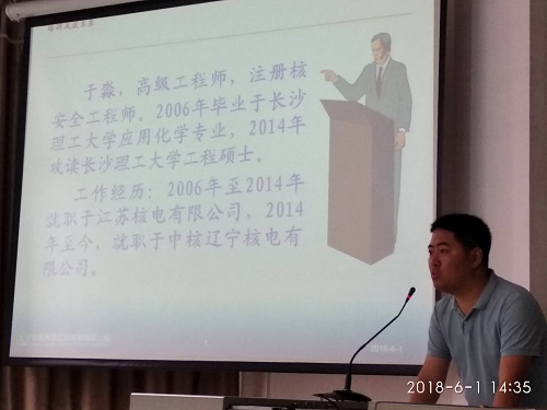 6月1日下午14:30在工三A-205于高工就“核工业发展历程及核电技术”的专题进行讲座。参会的有李宇春教授,汪红梅副教授,匡尹杰副教授,朱玲副教授和李焰博士及应用化学专业部分大四和大三的本科生及研究生。于高工从核工业发展历程、田湾核电厂去漫游、田湾核电技术简介、CAP1400技术简介、核电化学工作范围等五个方面展开,用深入浅出的语言介绍了核工业发展的8个阶段,借助视频展示了田湾核电厂区的分布,便于了解核电厂的布局和生产流程;最后,阐述了核电化学的工作范围以及未来的发展趋势。汇报结束后,于淼高工回答了老师和同学们的热烈提问,并鼓励同学们积极投身到国家的能源建设中去。