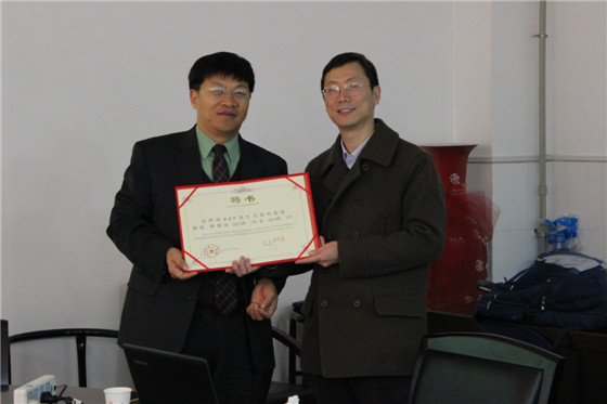 聘任仪式由曹忠教授主持。首先,曹忠代表学院和省重点实验室对黄建中博士的到来表示热烈的欢迎,并介绍了黄博士的个人基本情况,随后向黄博士颁发了我校客座教授聘书;接着,黄建中博士对学校的聘任表示由衷感谢,并表示将为学校和学院的发展及学科建设作出贡献。