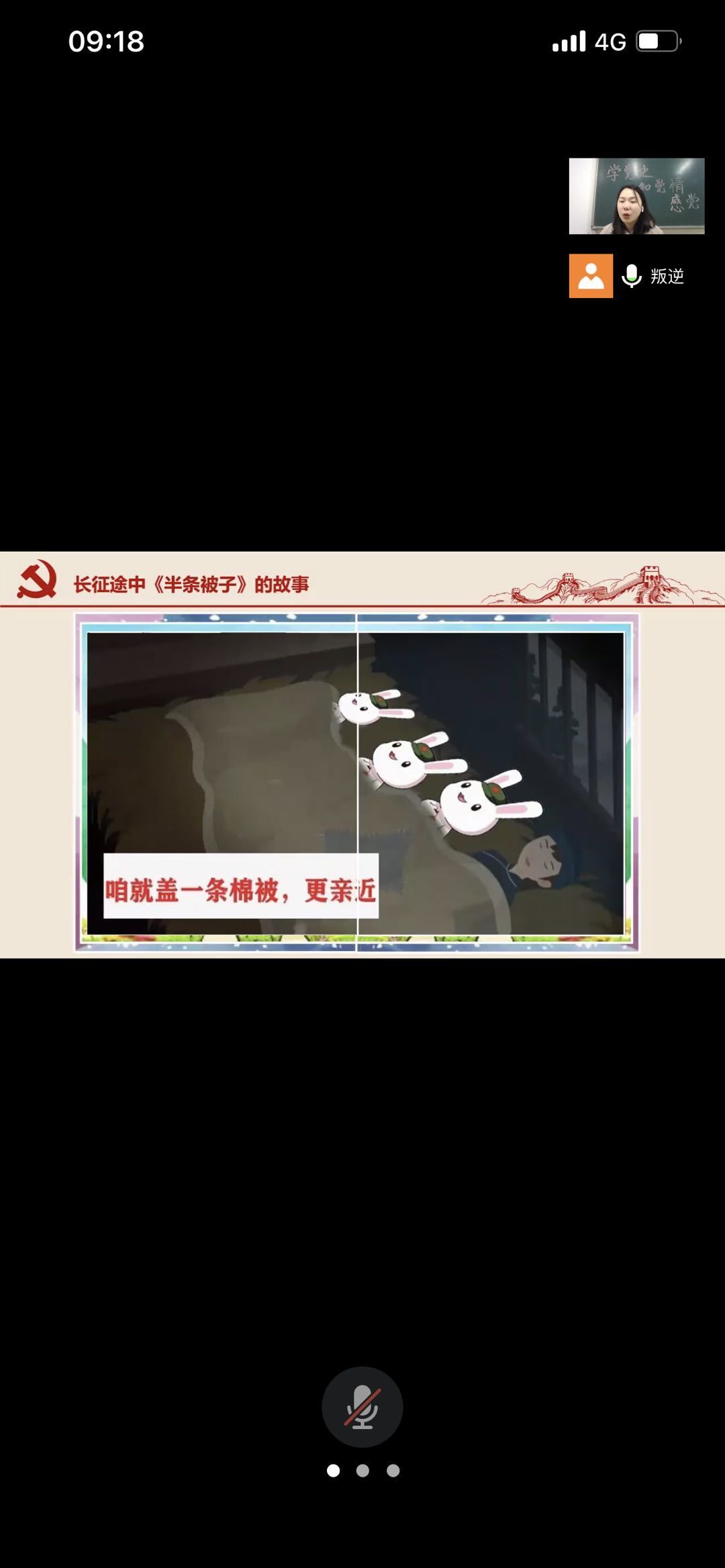 本次活动主讲人为食品本科生党支部贺瑶、环工本科生党支部陈梦瑶,宣讲内容围绕“中国共产党的诞生、红军长征、新中国成立、改革开放、抗击疫情”五个部分展开,活动中,宣讲员通过小视频、动画党史小故事等贴近小学生实际的生动活泼的素材,讲述了红军长征事迹、土地改革政策等党史知识,让“在线”聆听的小学生们仿佛回到了战火纷飞的年代,看到无数革命先烈为了革命胜利抛头颅洒热血的英勇场景。如在播放视频《丰碑》后,贺瑶以深入浅出的方式引导大家,她说“视频中军需处长将御寒军衣给了小战士,自己却永远留在了雪山上,在长征途中还有许许多多像处长的红军战士,他们为了革命的胜利,无私奉献,艰苦奋斗,这种吃苦耐劳、勇往直前也被称为长征精神,而长征也体现了中华民族百折不挠、自强不息的民族精神。”