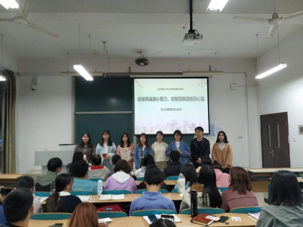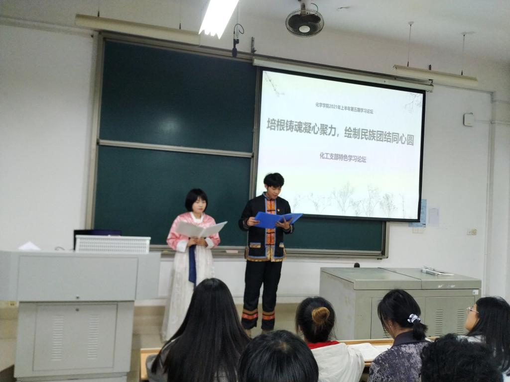 4月9日晚,化学学院在工三B215举办第五期学习论坛,论坛主题为“培根铸魂凝心聚力,绘制民族团结同心圆”。本期论坛由化工支部承办,化工支部曹俊和化工支部陈蕾主持,部分党员和积极分子代表参加。