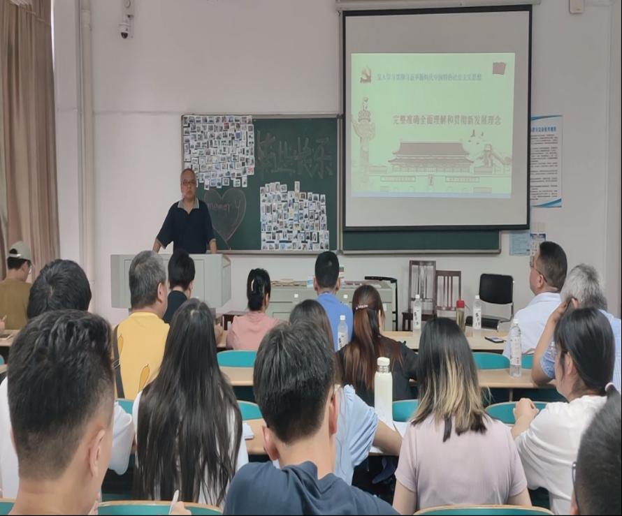 邓豫老师给大家上了一堂《完整准确全面理解和贯彻新发展理念》的主题党课。邓老师结合我院实际,希望大家从整体上、根本宗旨上、大局上和政治上等方面理解和贯彻新发展理念。希望实验中心创新方式方法,更加注重实验室安全,为学院的发展保驾护航;希望同学们坚守理想信念,努力学习,增强本领,将来为祖国的现代化建设贡献力量。