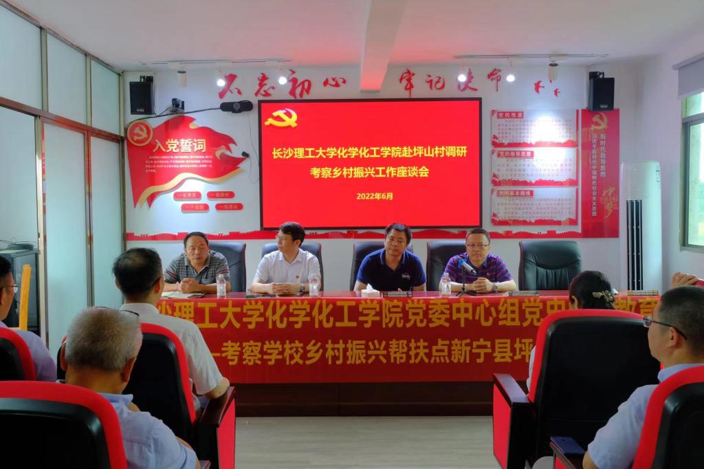 为深入学习习近平新时代中国特色社会主义思想和习近平总书记关于实施乡村振兴战略重要论述精神,创新理论学习形式,切实服务区域经济社会建设,积极助力乡村振兴,2022年6月16日,化学学院党委理论学习中心组赴新宁县坪山村调研乡村振兴工作。学院党委书记宋刘斌带领中心组学习成员深入田间地头,采取“现场学习+调研+慰问+学习研讨”的形式进行了深入的学习交流,把“课堂”设在乡村振兴、美丽乡村建设第一线。学院中心组全体成员,太阳成集团tyc122cc入口乡村振兴驻坪山村工作队队长吴振华,队员曾宪禄、刘军,坪山村村委会主任蒋新华等村“两委”干部及村民代表参加此次学习活动。