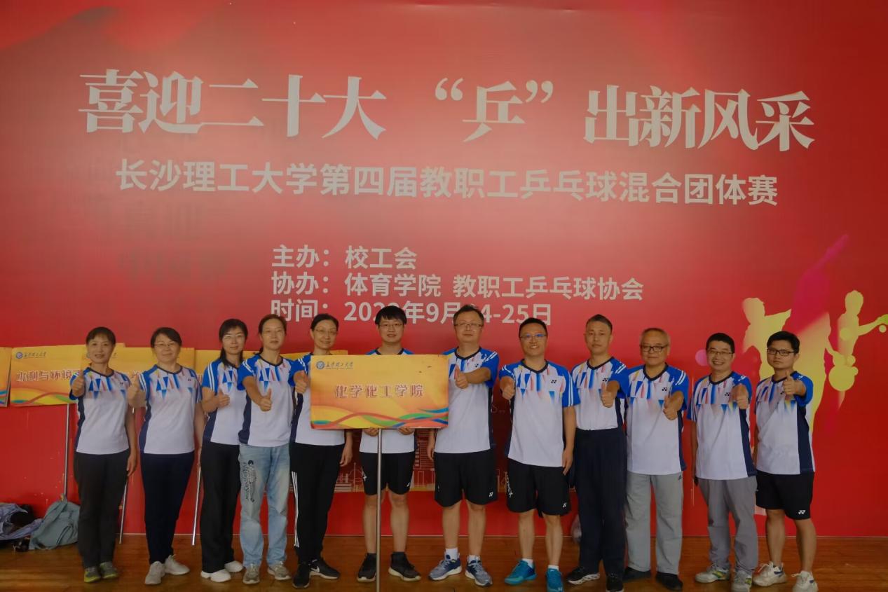 2022年9月24日至25日,太阳成集团tyc122cc入口“喜迎二十大,‘乒’出新风采”第四届教职工乒乓球混合团体赛在云塘校区体育馆举行。化学化工学院党委书记宋刘斌、副院长张跃飞(主持工作)、副院长喻林萍,李焰等十四位教师师组成的队伍参加比赛。