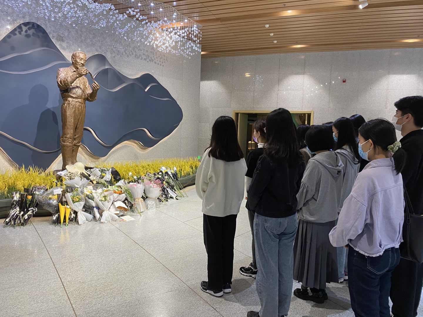 伟大精神力量在于它背后艰难探索、永不言弃、一心为民的情怀。进入馆内,支部成员仿佛身临其境,从实物、图片到多媒体、立体成像,近距离感受袁隆平与杂交水稻的故事、中国杂交水稻科研成果。经过多年努力探索,中国的杂交水稻已从三系杂交稻、两系杂交稻发展到超级杂交稻,一面展示108种超级稻示范推广品种的大型“种子墙”,正是近年来中国水稻育种成果的生动写照。袁隆平的“禾下乘凉梦”步步成真,不仅为中国粮食增产做出重要贡献,还走出国门、惠及世界,解决了世界1/5人口的温饱问题。博物馆前来悼念的人络绎不绝,有人将花束静静放在大厅的袁隆平铜像前,有家长低声向孩子讲述水稻发展史,支部成员在袁老铜像前进行默哀,我们都用最质朴的方式送别这位让人类摆脱饥荒的“麦田守望者”。