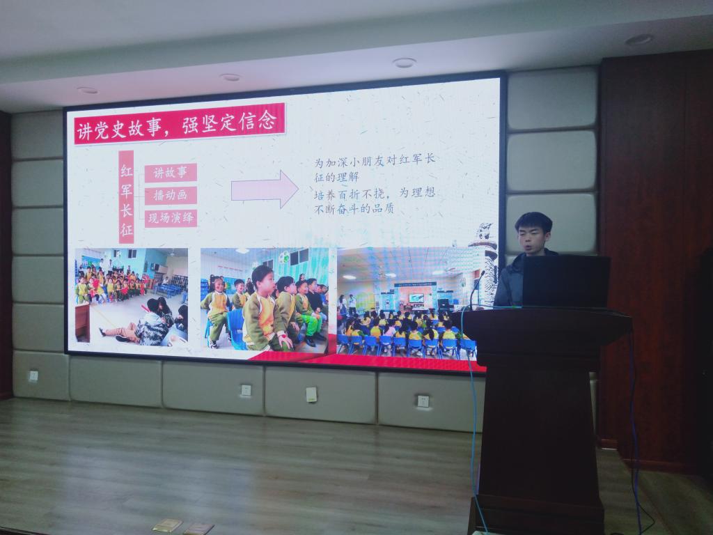 首先,主持人曹俊对培训班实践开展情况进行了初步介绍。随后,十个小组按照汇报顺序依次对本小组实践成果进行了详细汇报,各小组实践涉及现场展示、志愿服务、人物寻访、舞台演绎、话剧表演等多种形式,实践成果丰厚。第一组和第四组对手工制品进行现场展示,并详细讲解了手工制品所代表的含义;第二组和第六组走进小学课堂,培养小朋友爱国爱党的情怀;第三组和第四组人物专访,承载老党员老战士对青年党员和青年学生满怀的期望;第五组和第十组精心编排舞台演绎和话剧表演,深入挖掘并还原党史故事;第七组、第八组和第九组特色微视频展示,表现了发展对象积极向上的精神风貌。最后,培训班负责人陈羽阳总结,她指出本次实践活动是一次精神的洗礼与升华,希望学员们理论联系实际,在实践中检验真理和发展真理。
