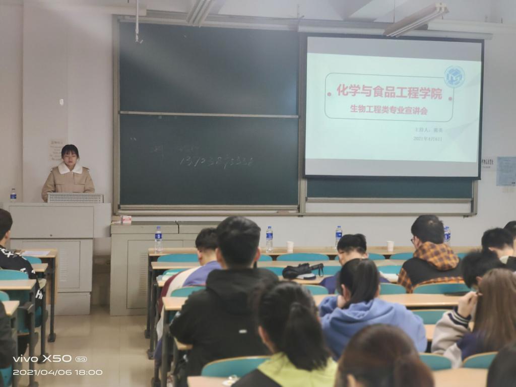 4月6日下午16:00-18:00化学学院在云工三A214举办了20级生物工程类专业宣讲会,到场的嘉宾有:李向红教授、吴苏喜教授、许宙副教授、文李教授、蒋雪薇副教授、舒孝顺教授。年级辅导员熊英主持了本次会议。
