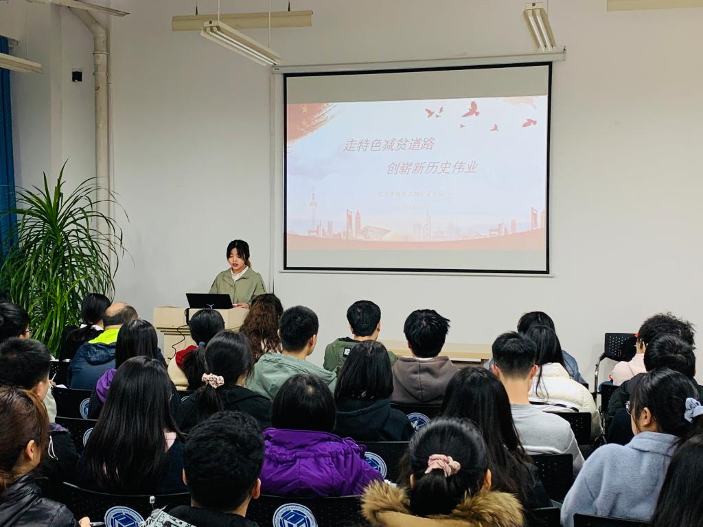 3月19日晚,化学学院学生党总支在工三B210举办第二期学习论坛,本期主题为“走特色减贫道路,创崭新历史伟业”。论坛由应化支部吴俞波主持,部分党员和积极分子代表参加。